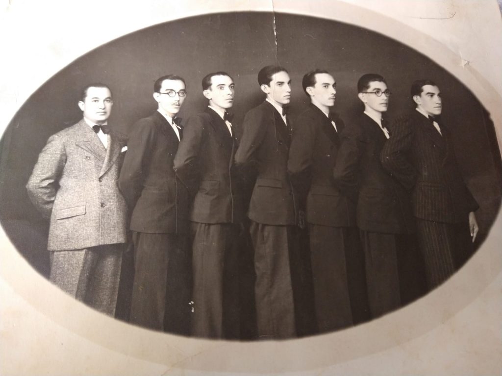 Clã Bortolan dos anos 50, sete irmãos com união de uma grande família. Da esquerda para a direita, Antônio, Vitorio, Emilio, Silvio, Atílio, João e Hélio. É nobre recordar.