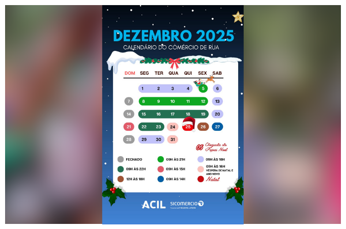 A Associação Comercial e Industrial de Limeira (ACIL) anuncia oficialmente os horários especiais de funcionamento do comércio para o período de fim de ano. A iniciativa tem como objetivo oferecer mais conforto, segurança e comodidade aos consumidores, além de apoiar os comerciantes em uma das épocas mais movimentadas do calendário.